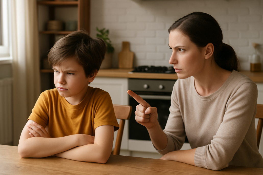 Praxisfall aus meiner Beratung, anonymisiert, 2024: Neun Jahre, laut, „Du nervst“. Mutter bleibt sitzen, Schultern tief. „Stopp. So reden wir hier nicht. Du bekommst fünf Minuten Pause, dann reden wir.“ Kind stapft ins Zimmer, Timer läuft. Danach kommt es zurück. Mutter: „Ich höre dich jetzt. Sprich normal.“ Kind knurrt, fängt sich. Mutter zieht die Folge: „Morgen zehn Minuten weniger Tablet.“ Keine Diskussion. Später kurze Nähe, Buch vorlesen.